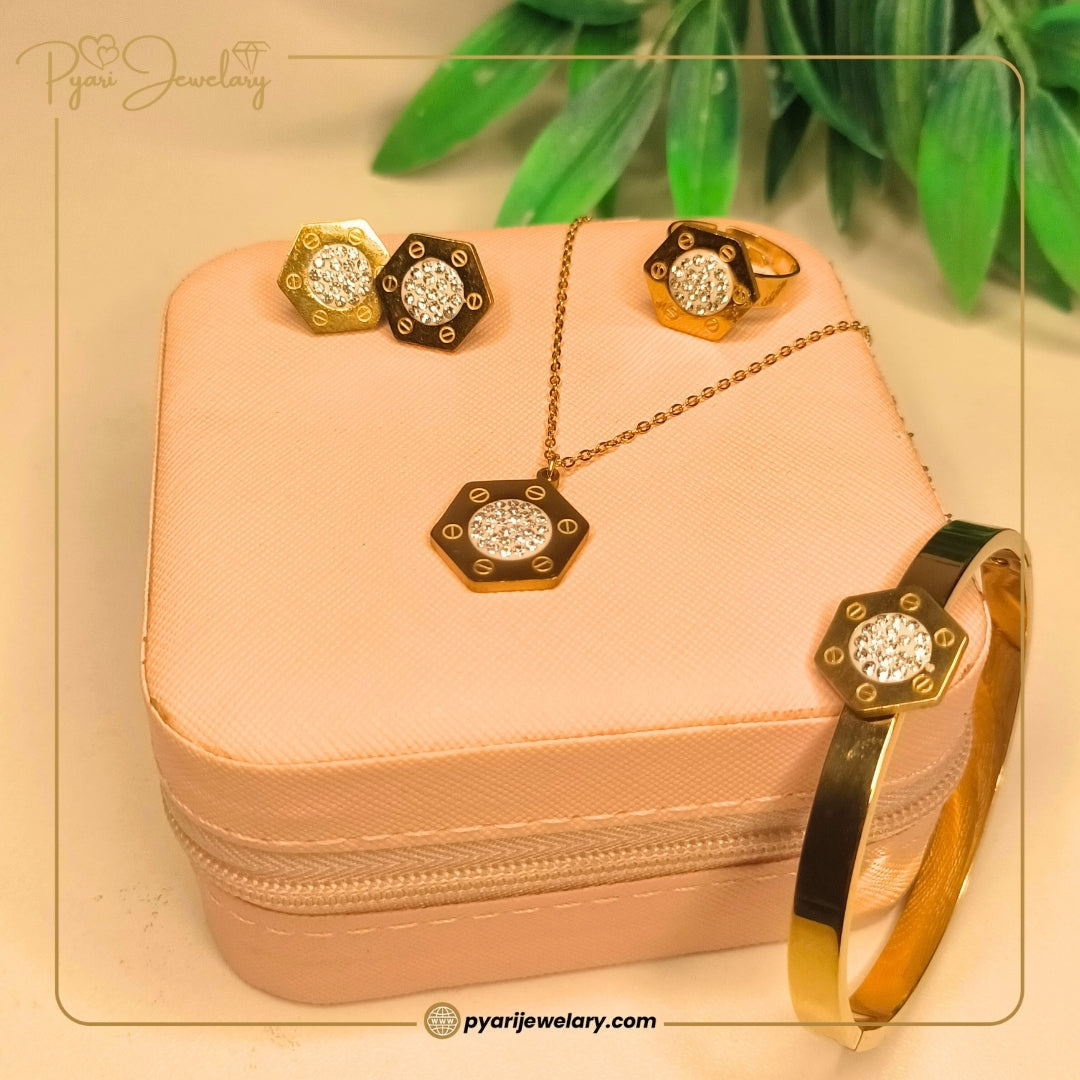 Crystal Hexagon Gold-Plated Jewelry Set | Artificial Jewelry for Women