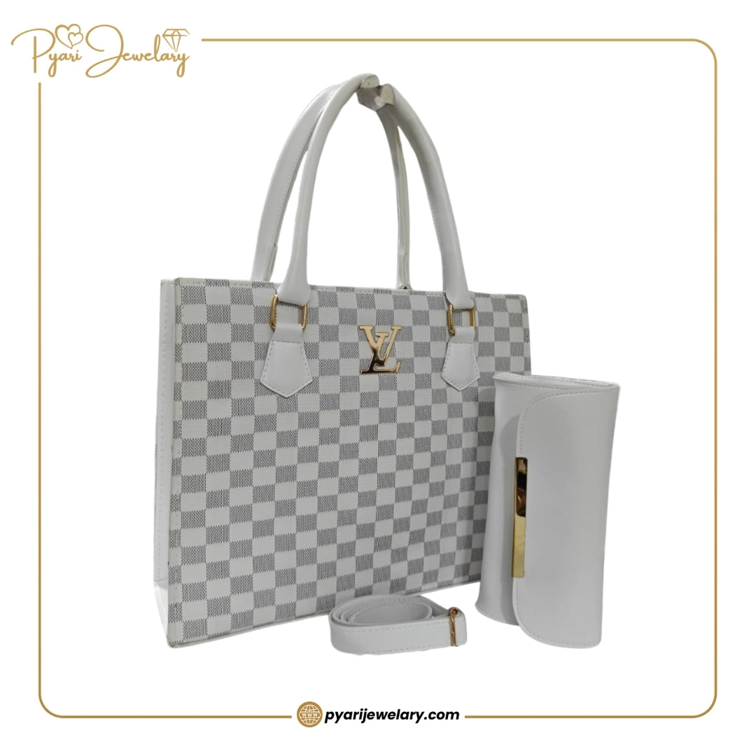 Elegant White Checkered Luxury Tote Handbag Set for Women | Premium PU Leather Shoulder Bag