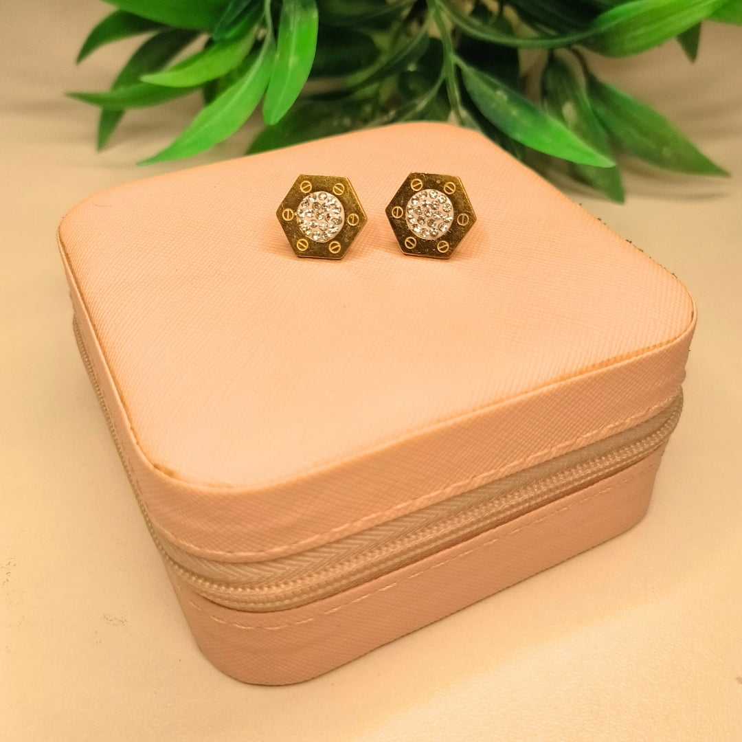 Featuring a crystal-studded hexagon design with a glossy gold-plated finish (not real gold), this set adds instant elegance, sparkle, and modern charm to any outfit.