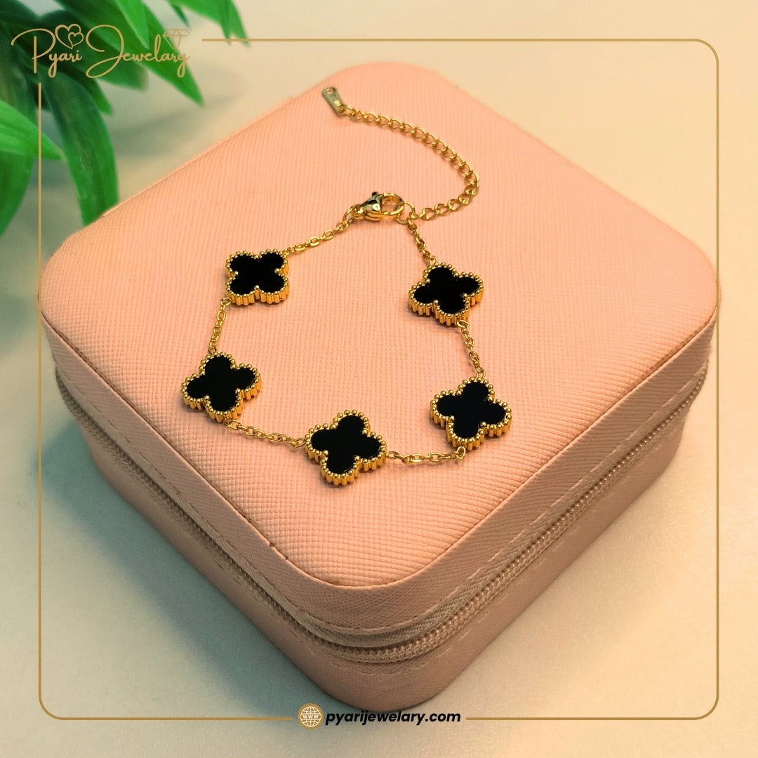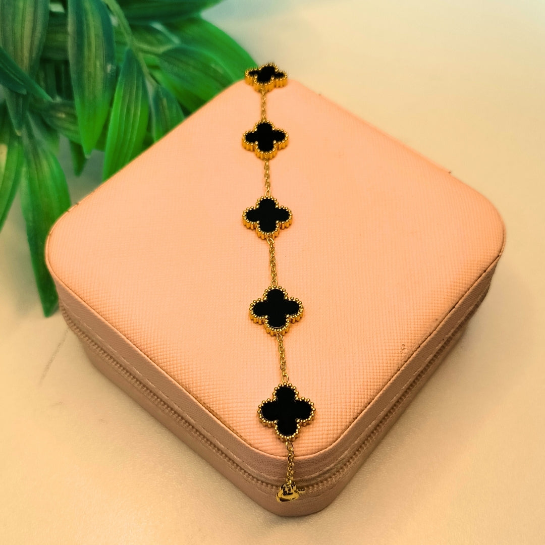 Gold-Plated Black & White Clover Charm Bracelet | Pyaari Jewellery