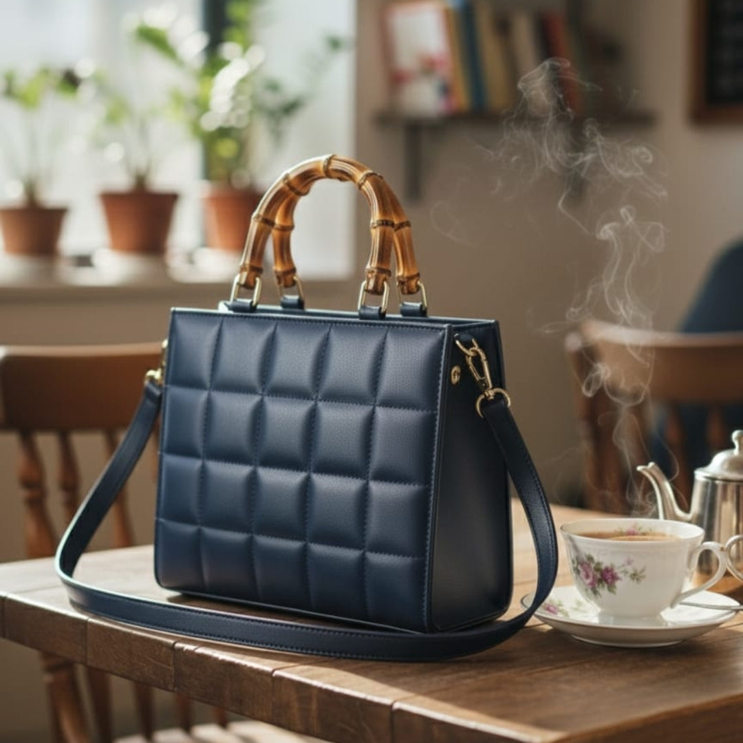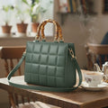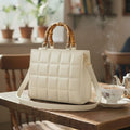 Luxury Chocolate Brown Quilted Handbag for Women | Bamboo Handle Tote