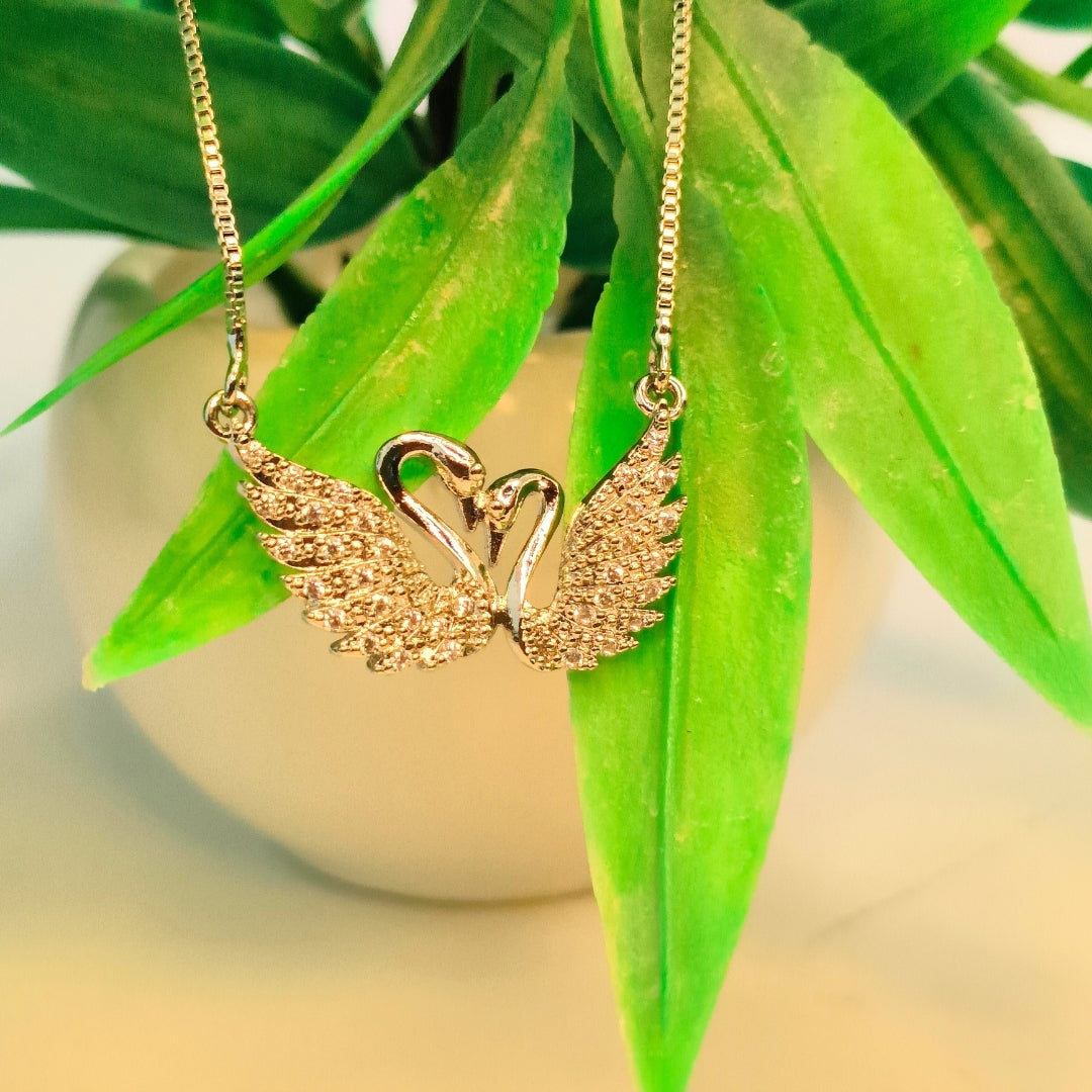 Pyari Jewellery Cute Gold Swan Wings Pendant Necklace