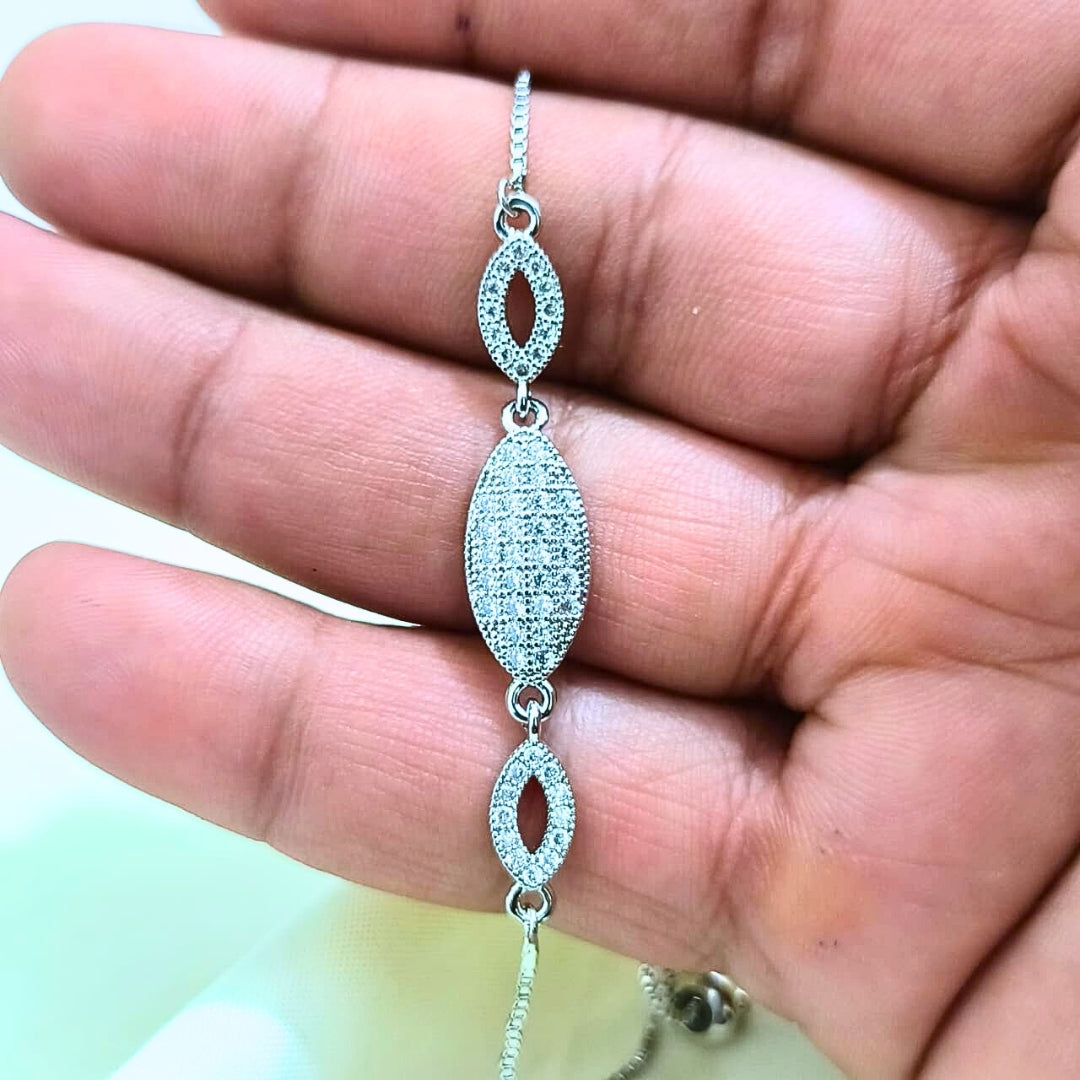 Silver-Plated Sparkling Oval Chain Bracelet | Premium Artificial Jewelry for Women